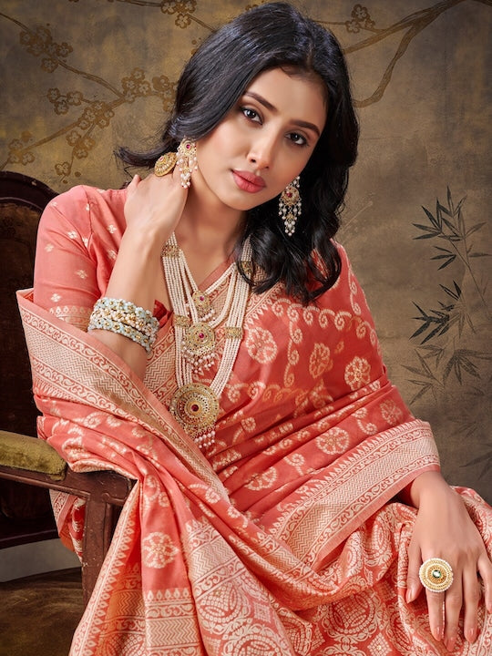• Ethnic motifs woven design saree with zari border