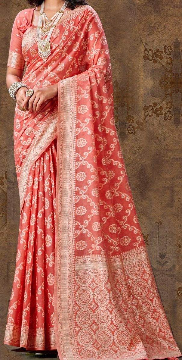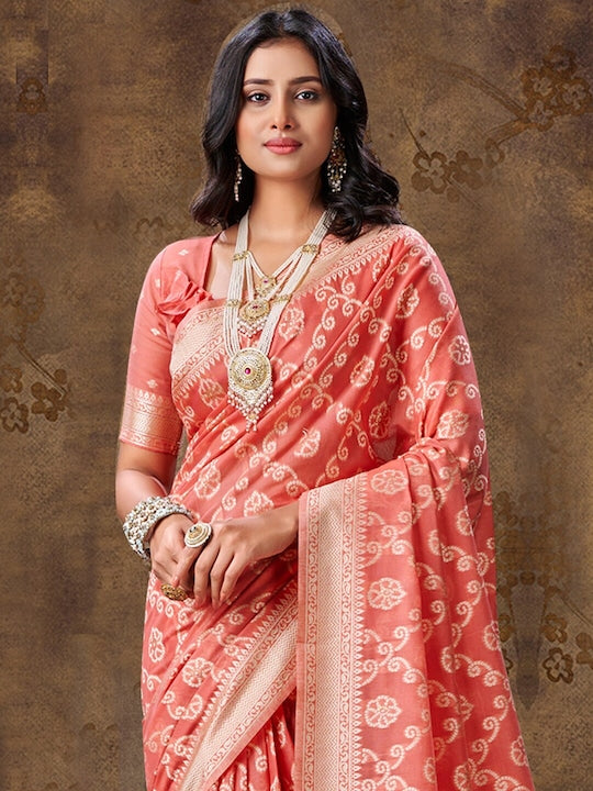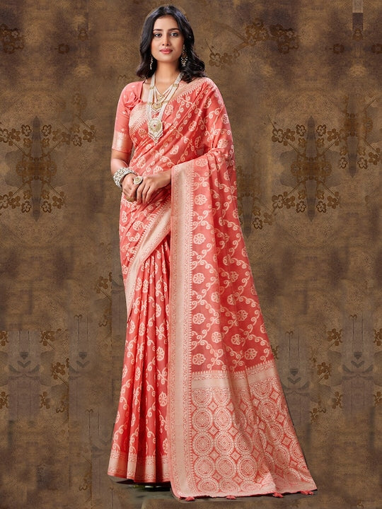 Sangria Rust Ethnic Motifs Woven Design Zari Banarasi Sarees
