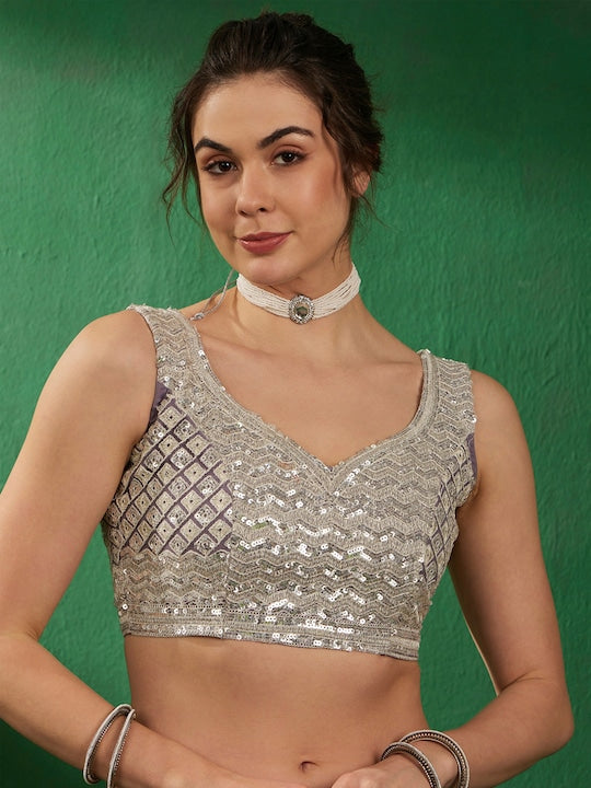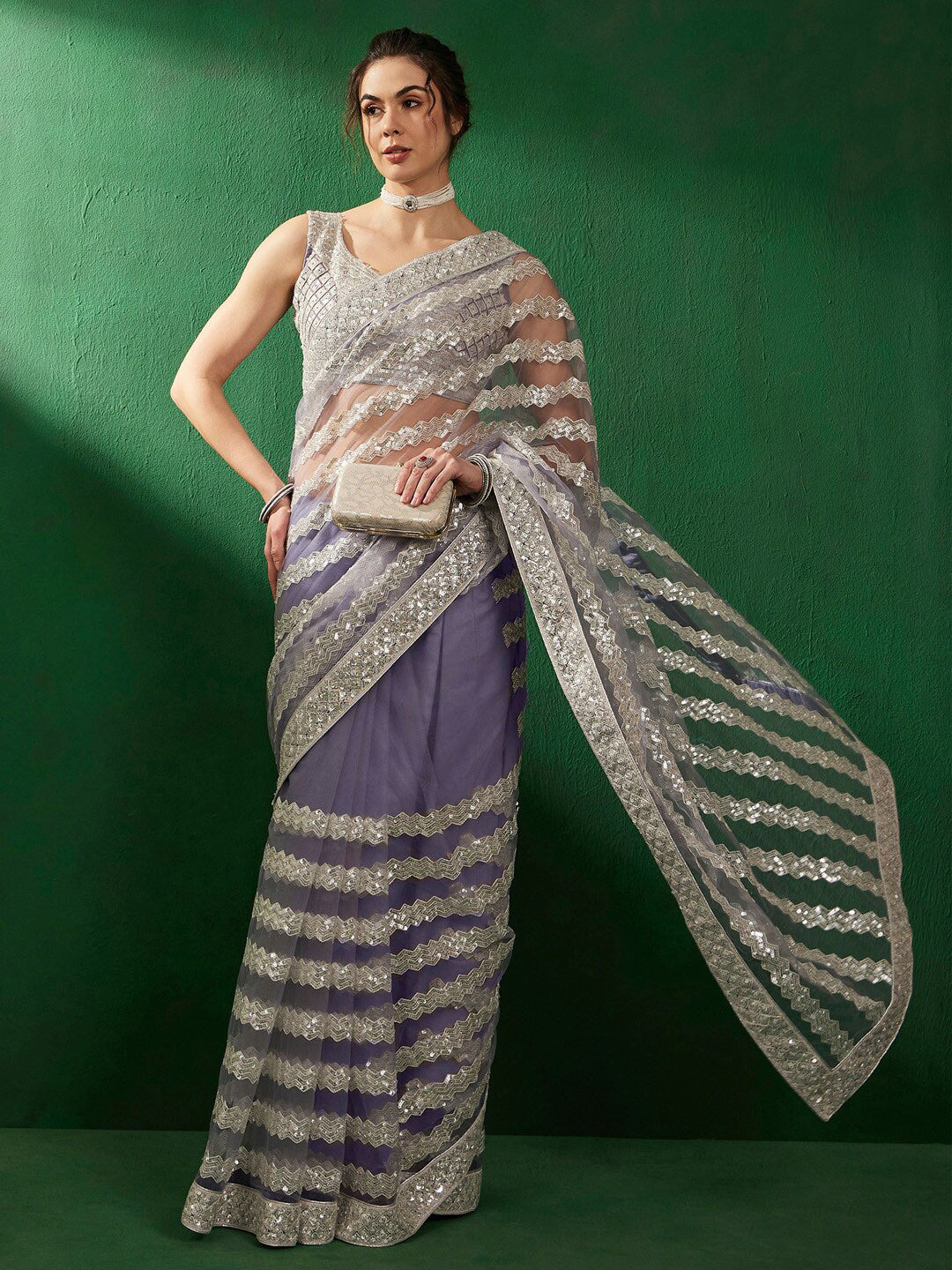 • Lavender-coloured saree