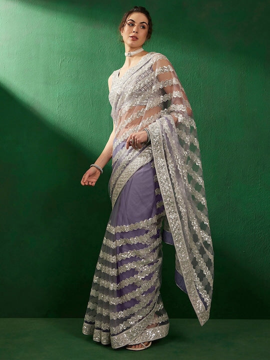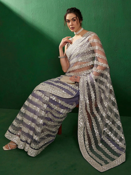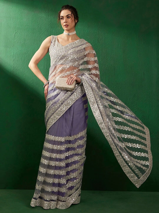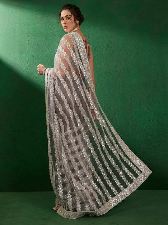 Sangria Sequinned Embellished Net Saree