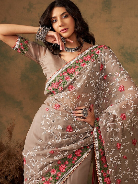Sangria Grey Ethnic Woven-Designed Festive Saree With Blouse Piece