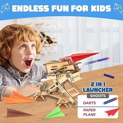 - ACTION-PACKED FUN TIME: Let your child have a blast with this exciting mechanical machine that launches paper airplanes and darts into the air. Our step-by-step instructional manual ensures a deeply engaging DIY experience, perfect for kids to construct and enjoy their own uniquely awesome toy for hours. Designed for Boys and Girls for ages, 6,7,8,9,10,11,12,13,14 years old