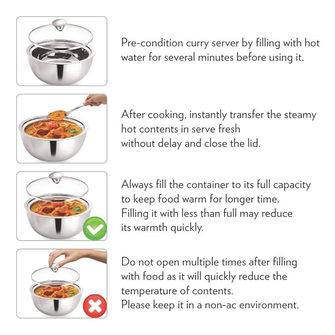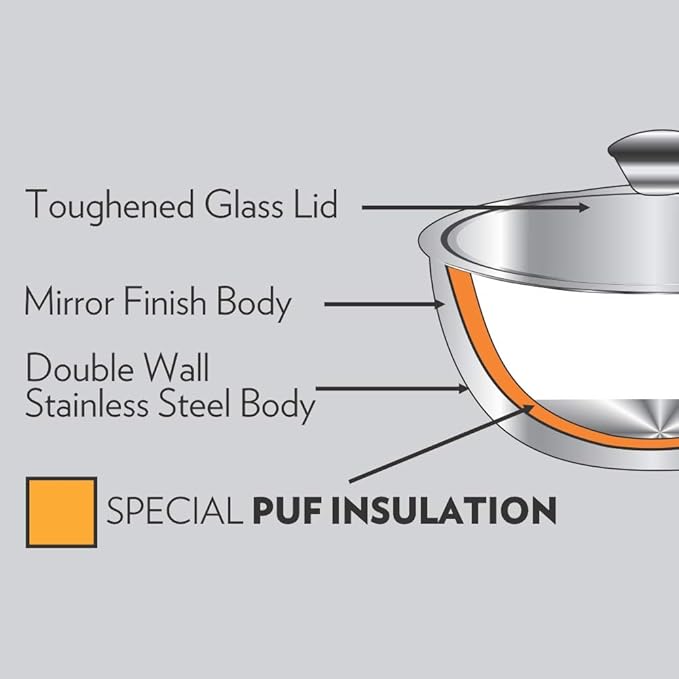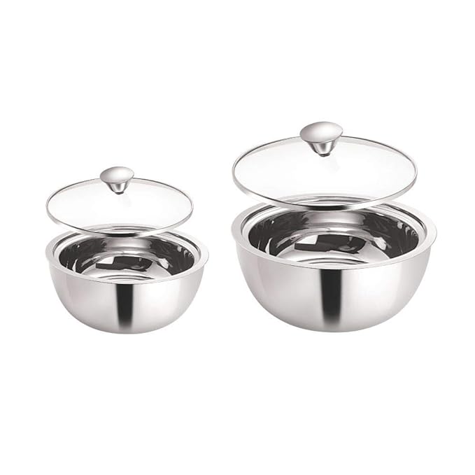 Borosil - Stainless Steel Insulated Curry Server | Set of 2 | 500ml + 900ml | Silver