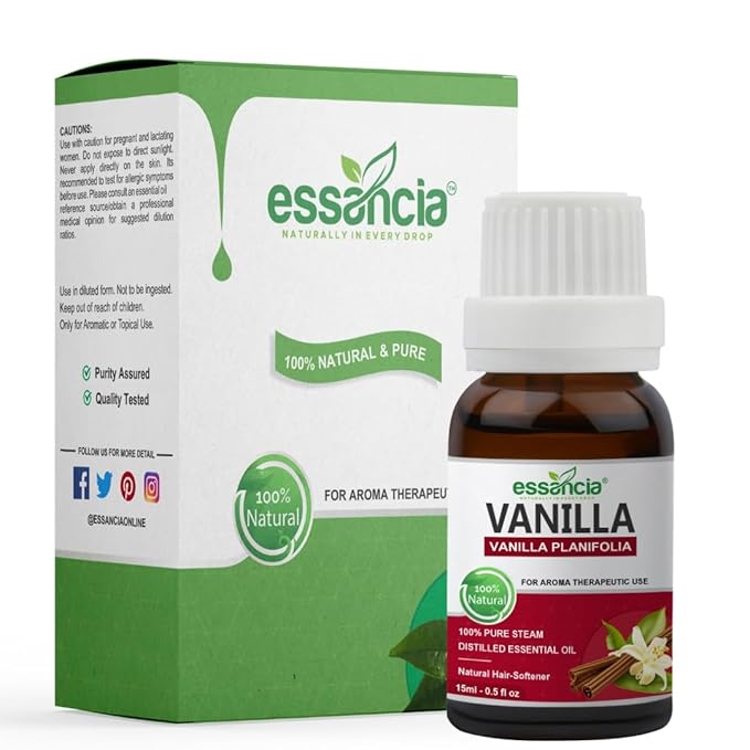 • Aromatherapy: Add a few drops of Vanilla essential oil to a diffuser or oil burner. Inhale the sweet & comforting aroma to promote relaxation & create a soothing environment.