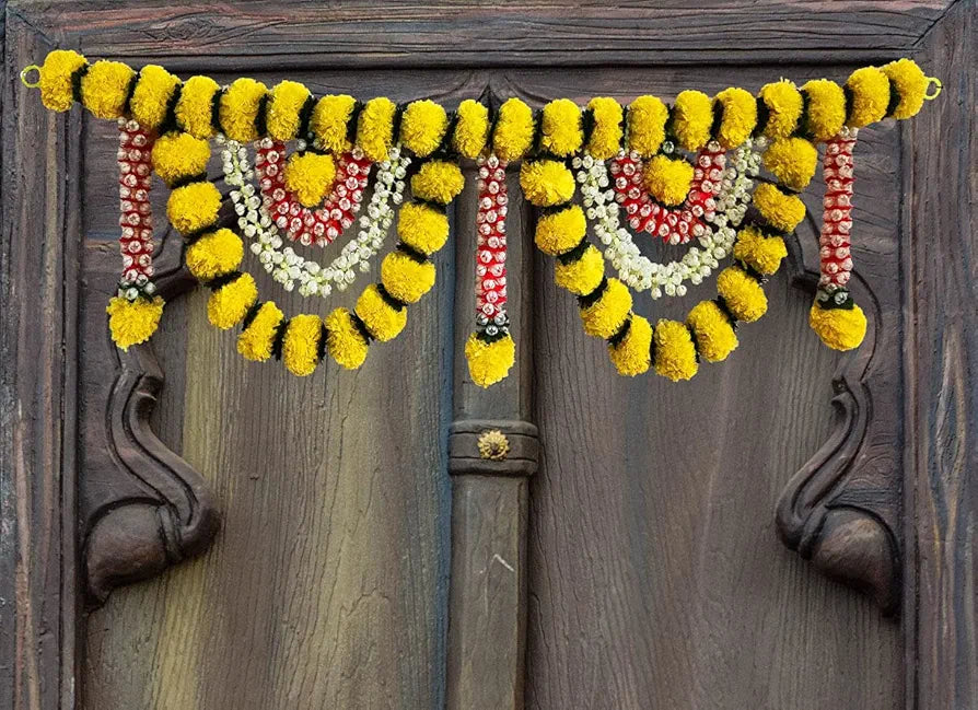 Artificial Marigold Flower Toran Garlands Handmade Bandhanwar Door Entrance Hanging 40Inches