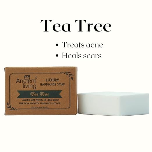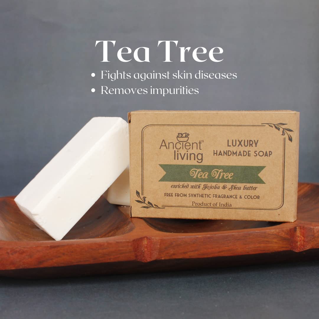 • Ancient Living Tea Tree Luxury Handmade Soap is enriched with the goodness of pure tea tree oil, and jojoba oil along with other nutrient-rich skin nourishing oils.