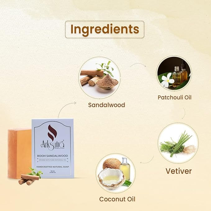Arksutra Rooh Sandalwood Soap Infused With Pure Patchouli Oil - 125 GMS