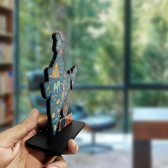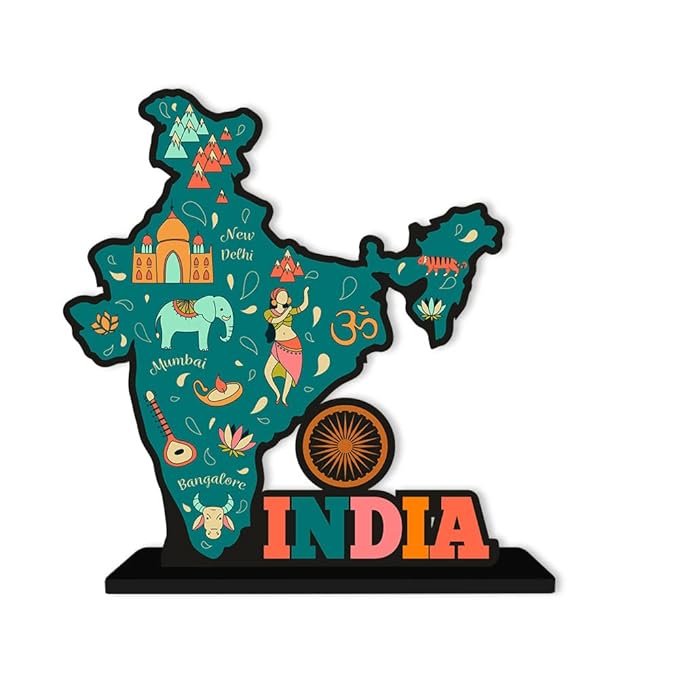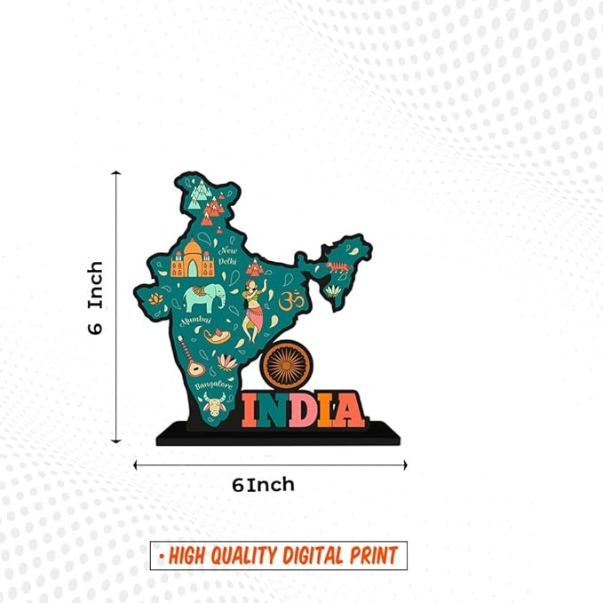 Art Vibes Wooden Idols and Fantasy Figurine India Map Designer Table Decor for Office Desk | Home Decoration