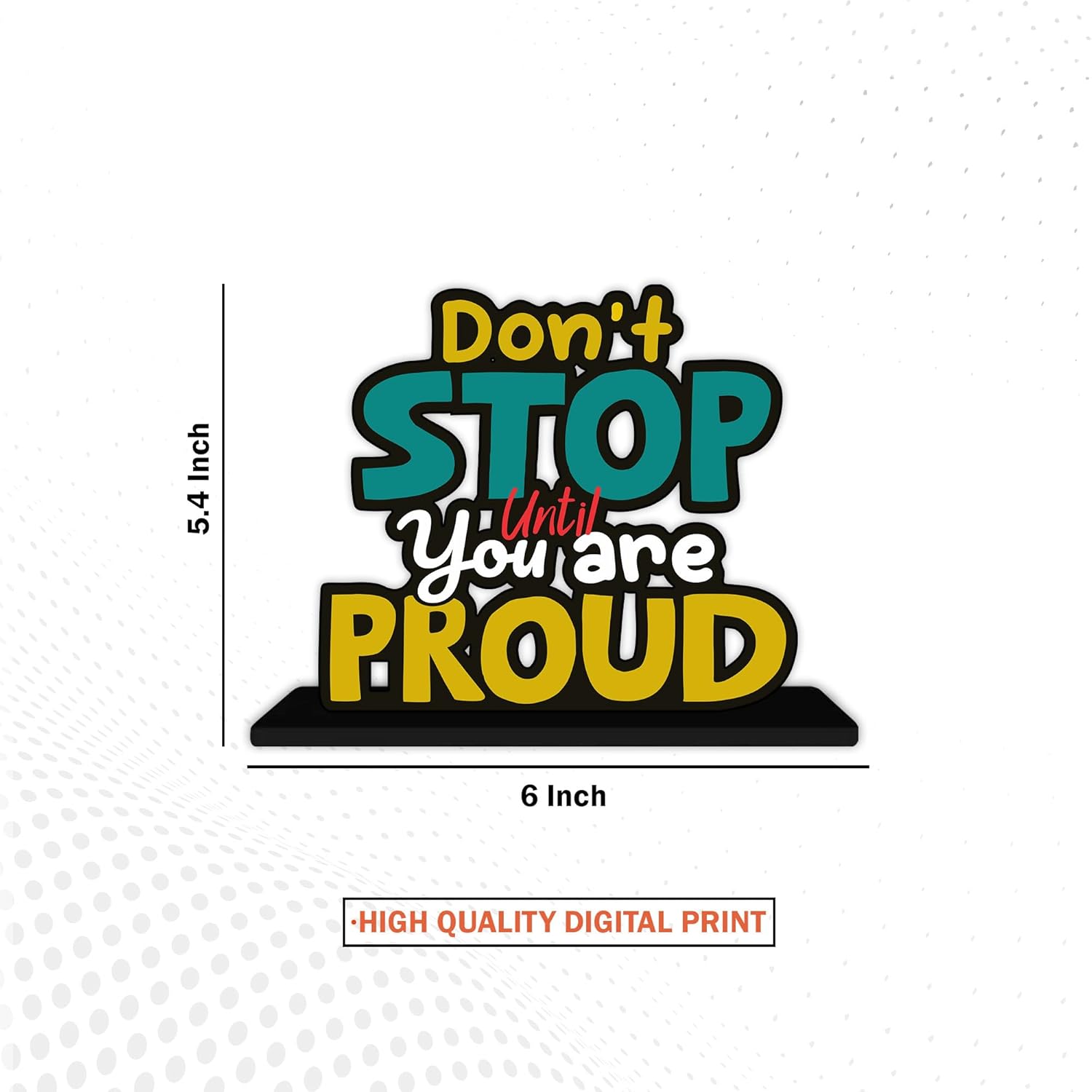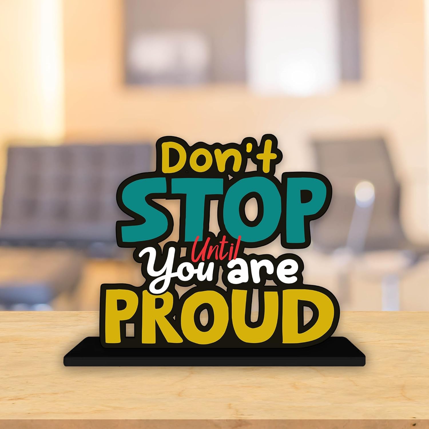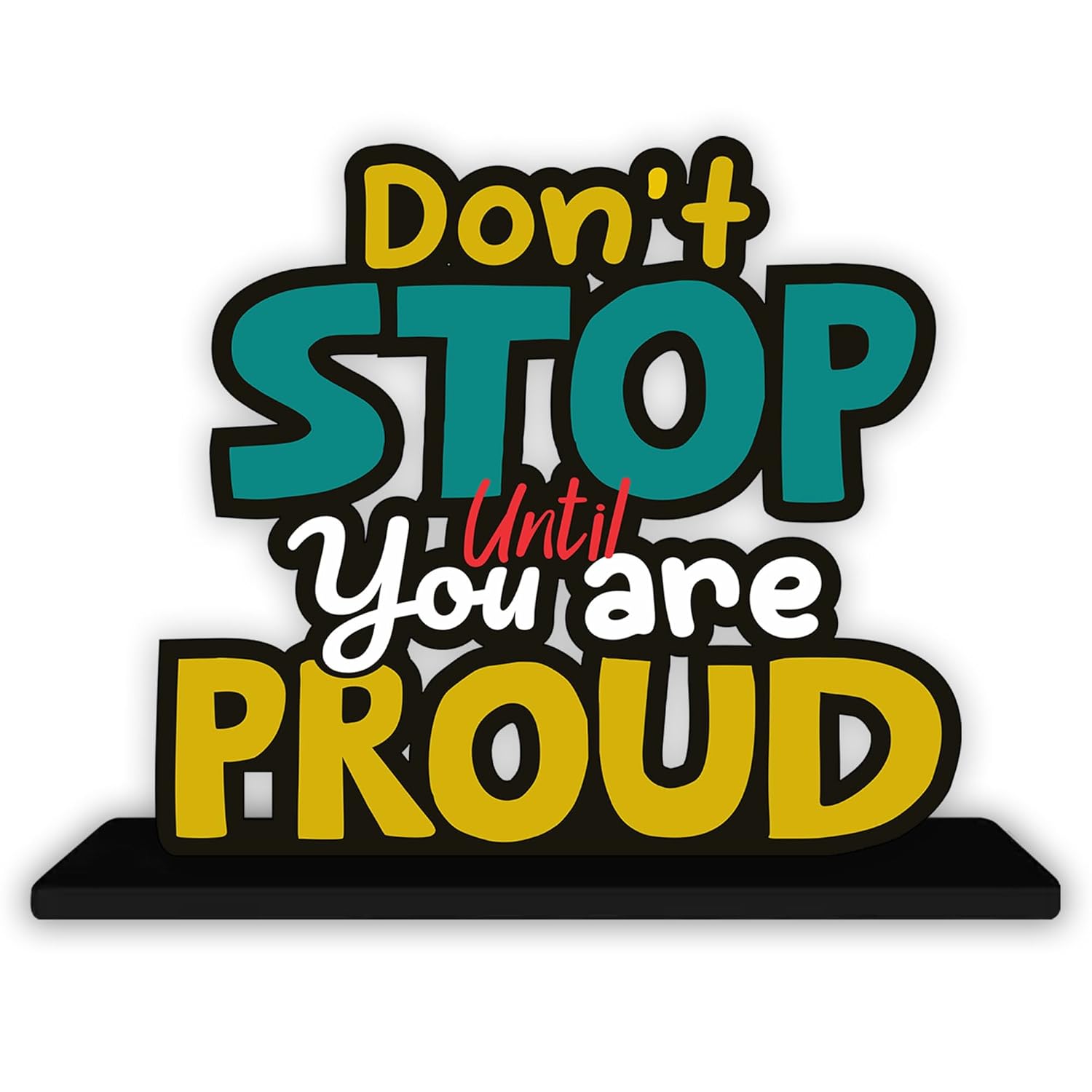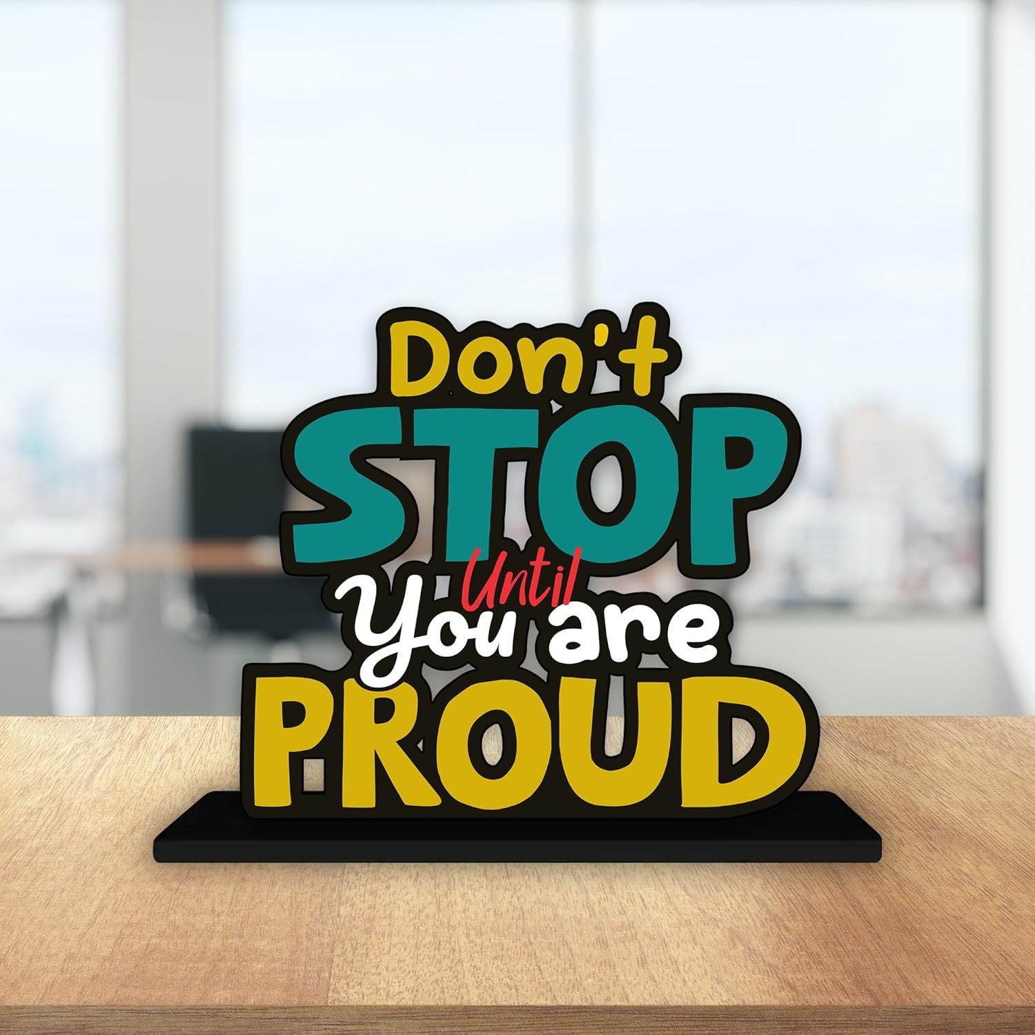 Art Vibes Wooden Idols and Figurine Don't Stop Until You Are Proud Positive Quotes Table Decor for Office Desk Alphabet Showpiece