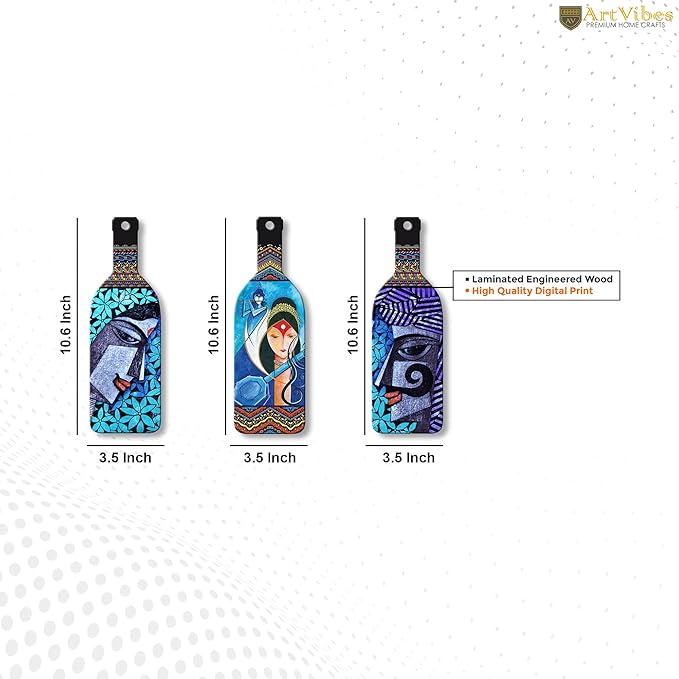 Artvibes Abstract Art Radha Krishna Wooden Wall Hanging for Home Decor | Set of 3