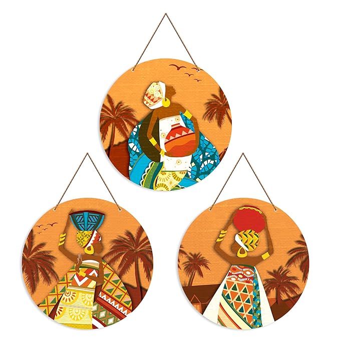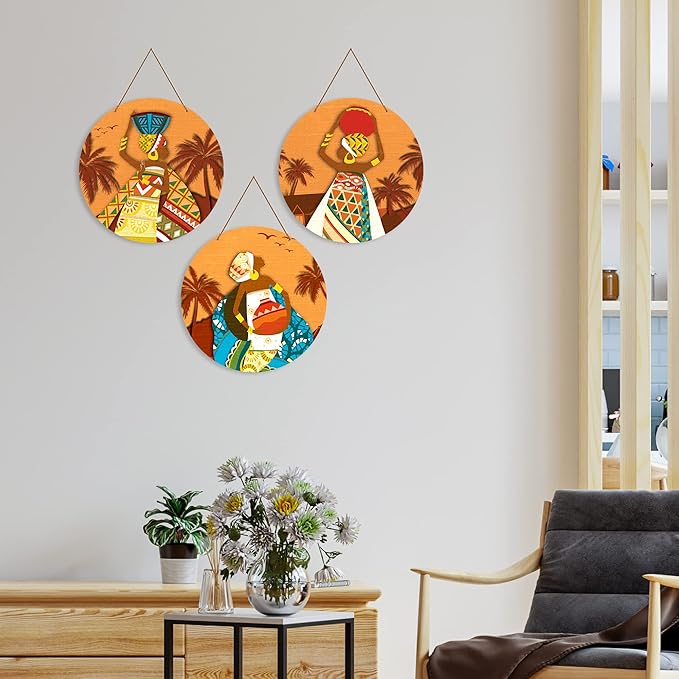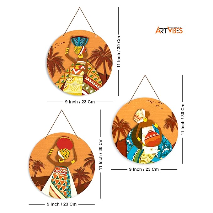 Artvibes African Warli Art Wooden Wall Hanger for Home Decor | Artwork Canvas Paintings