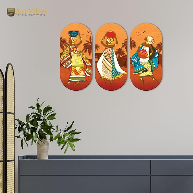Artvibes African Women Dancing Wooden Wall Hanger for Home Set of 3 (WH_9009N)