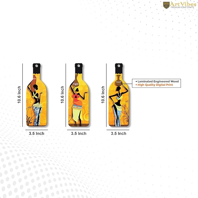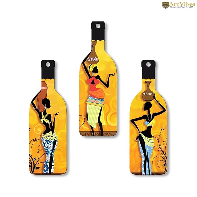 Artvibes African Women Warli Art Wooden Wall Hanging for Home Decor | Set of 3