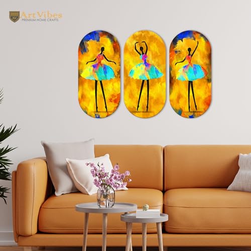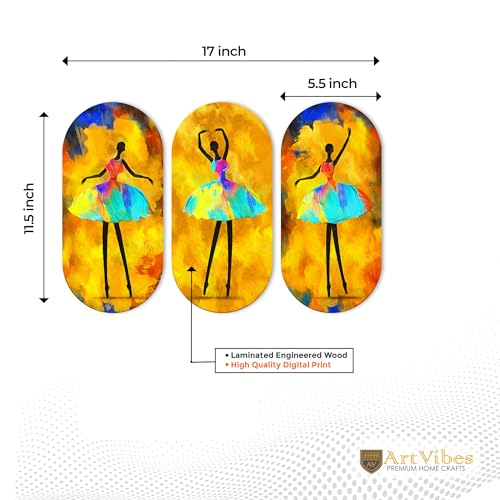 Artvibes Ballerina Dancing Abstract Art Wooden Wall Hanger for Home | Set of 3
