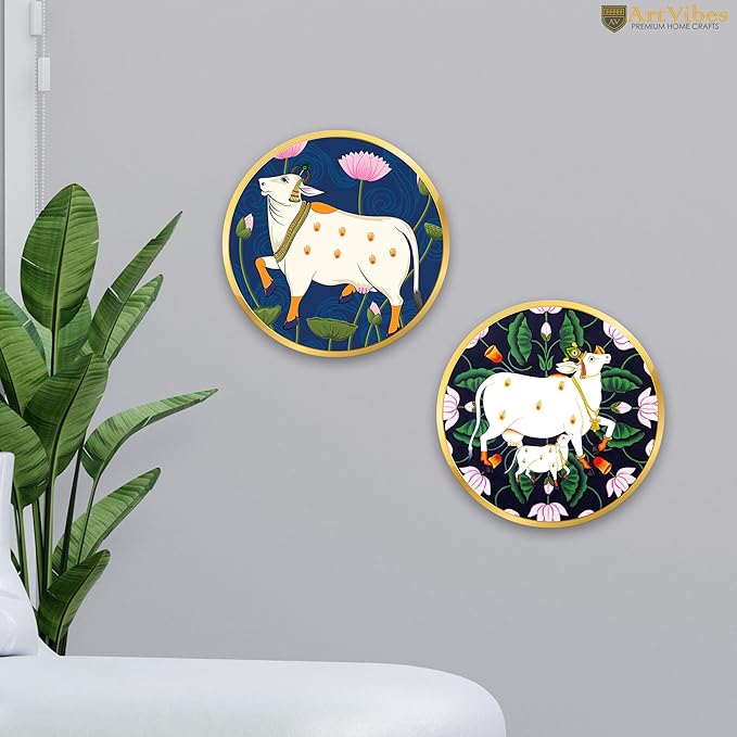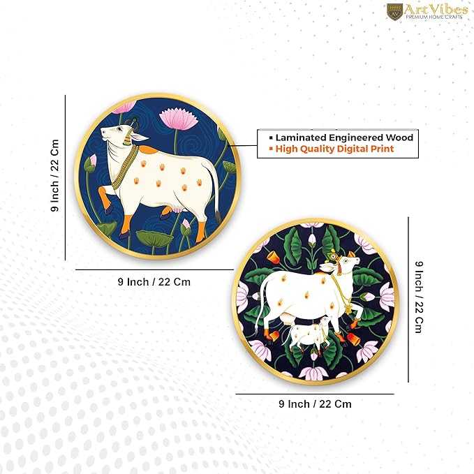 Artvibes Cow Round Shape Wooden Wall Hanging Decor