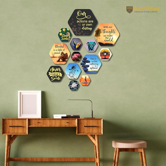 Artvibes Designer Wooden Wall Hanging Decoration for Home | Quotes Decor Item Pack of 13 Pieces
