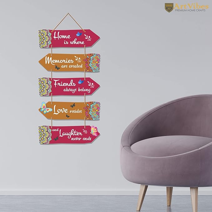 Artvibes Home Quotes Decorative Art Mdf Wooden Wall Hanger for Living Room | Set of 5