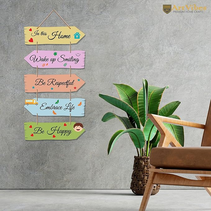 Artvibes Home Quotes Mdf Wooden Wall Hanger for Living Room | Set of 5