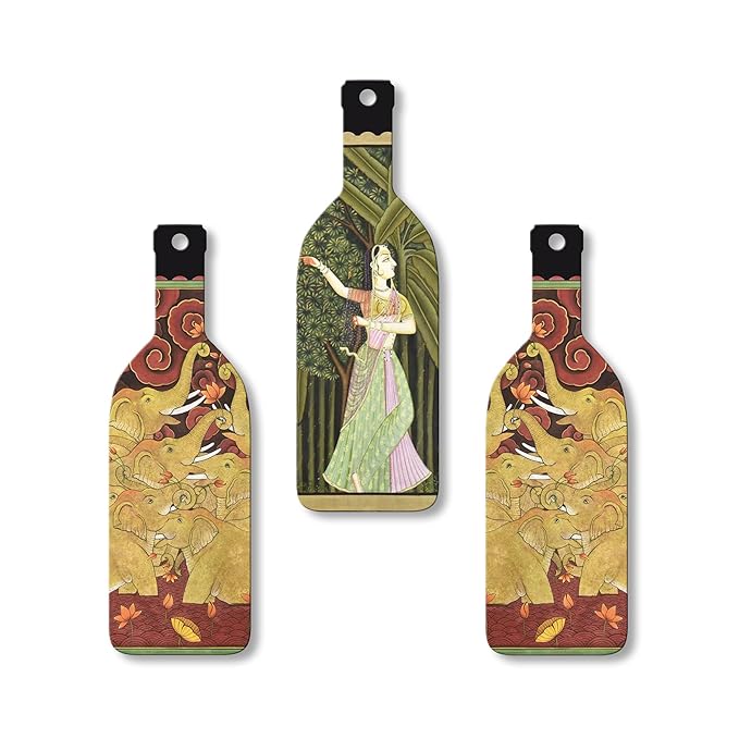 Artvibes Indian Folk Art Wooden Wall Hanging for Home Decor | Set of 3