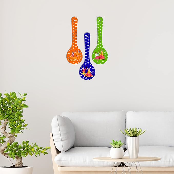Artvibes Madhubani Art Wooden Wall Hanger for Home | Set of 3