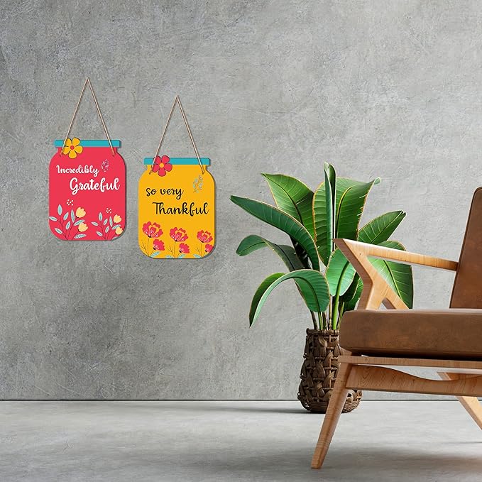 Artvibes Motivational Quotes Decorative Wall Art Wooden Hanger Ornaments for Livingroom | Set of 2