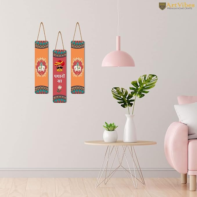 Artvibes Padharo Sa Designer Wooden Artworks Wall Hanging Decoration Items for Home | Set of 3