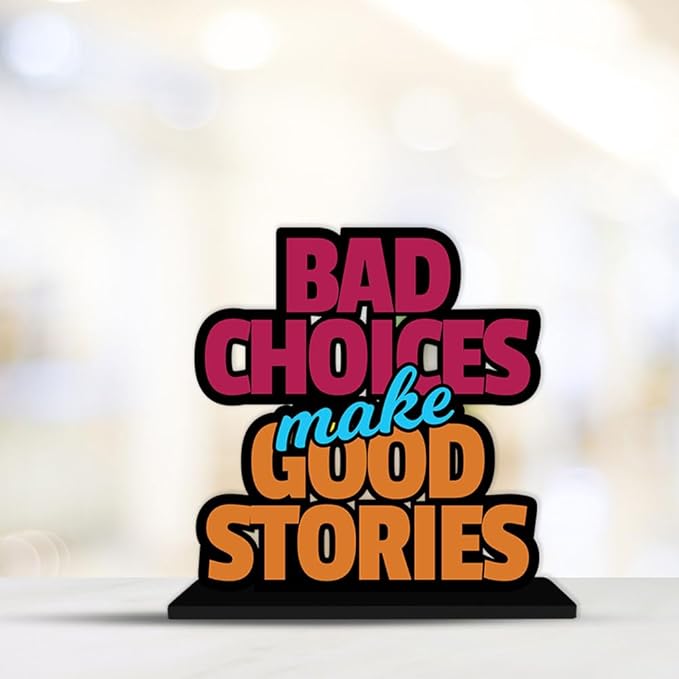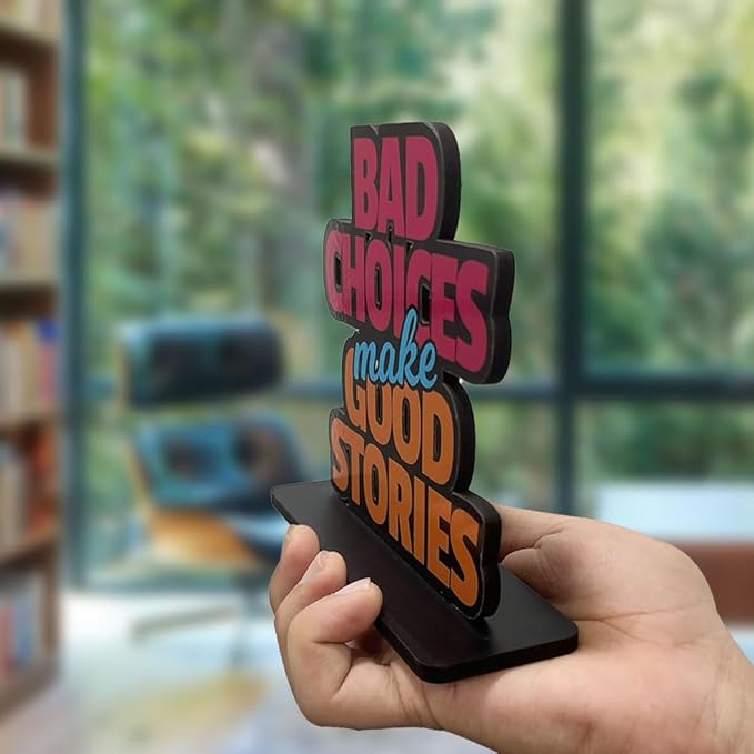 Artvibes Wooden Idols and Figurine Bad Choices Make Good Stories Inspirational Quote Table Decoration for Office Desk