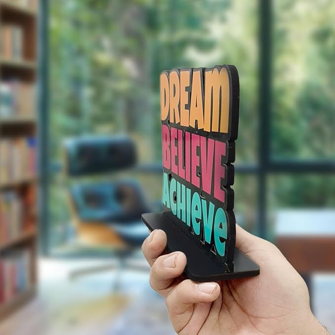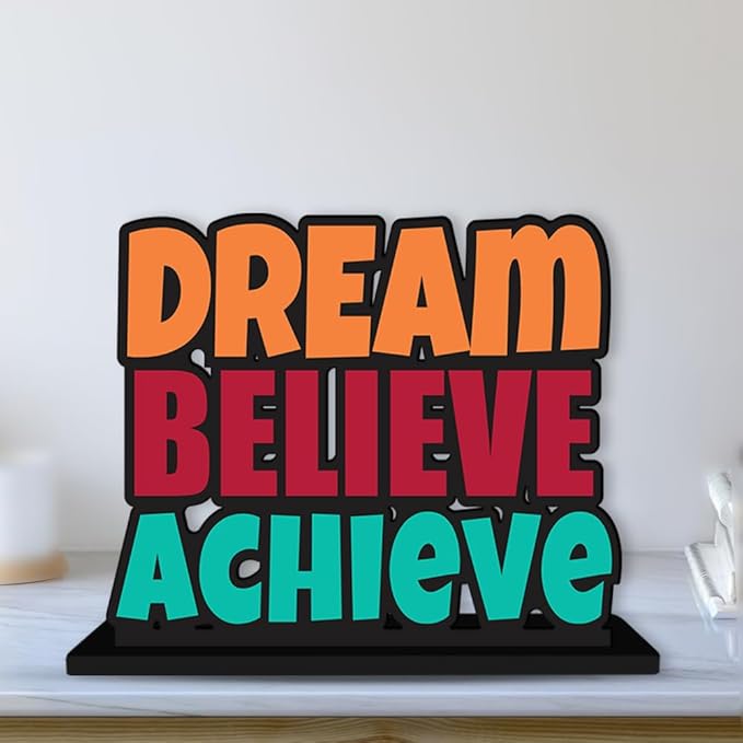 Artvibes Wooden Idols and Figurine Dream Believe Achieve Quote Table Decoration for Office Desk | Home Decor | Living Room