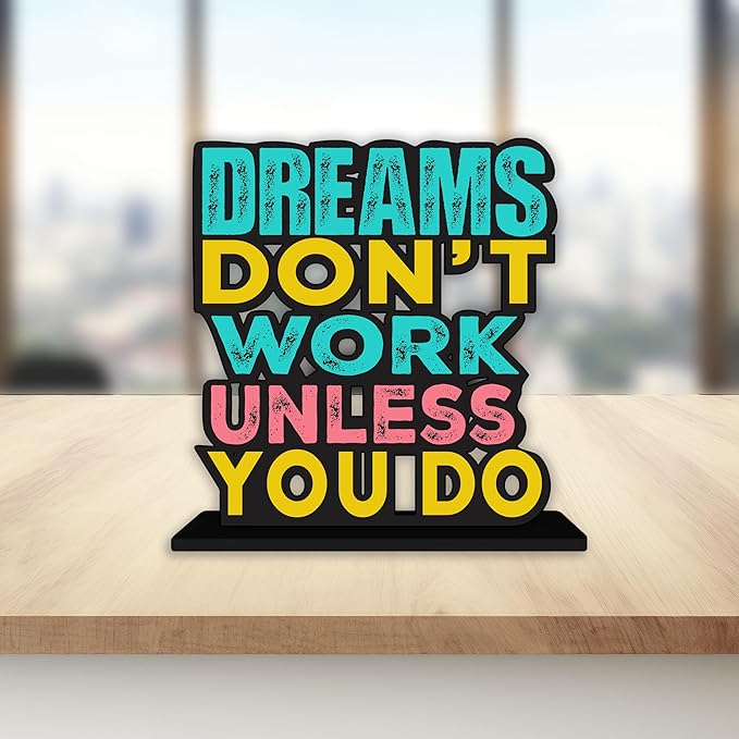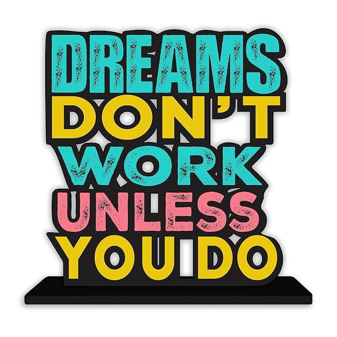 Artvibes Wooden Idols and Figurine Dream Don't Work Unless You Do Motivational Quotes Table Decor for Office Desk Showpiece