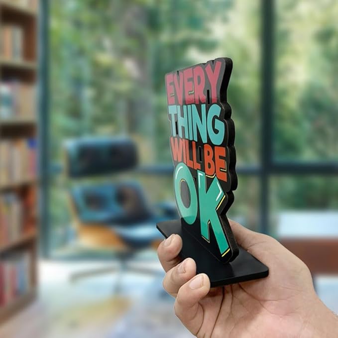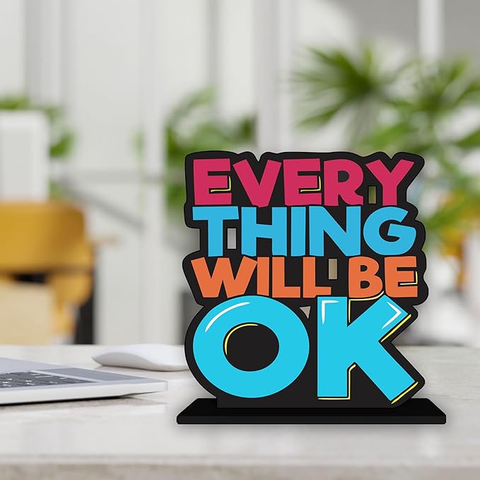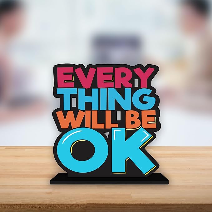 Artvibes Wooden Idols and Figurine Every Thing Will Be Ok Inspirational Quotes Table Decor for Office Desk