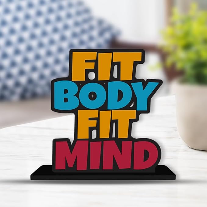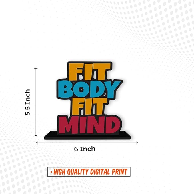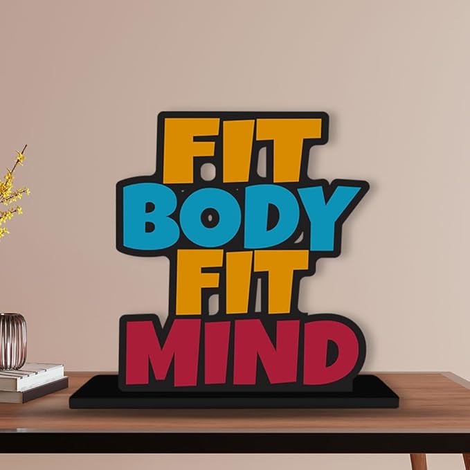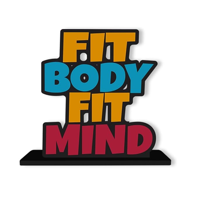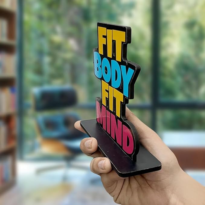 Artvibes Wooden Idols and Figurine Fit Body Fit Mind Fitness Positive Quotes Table Decor for Office Desk Showpiece