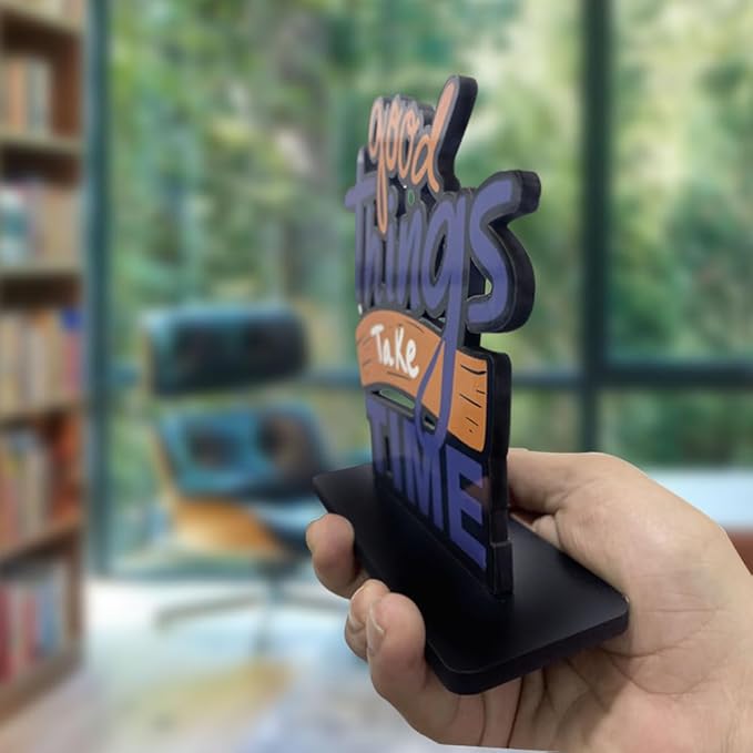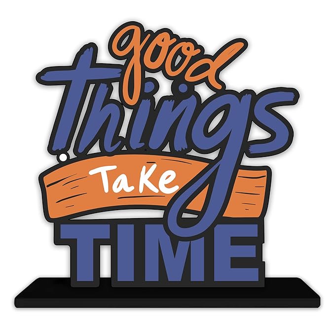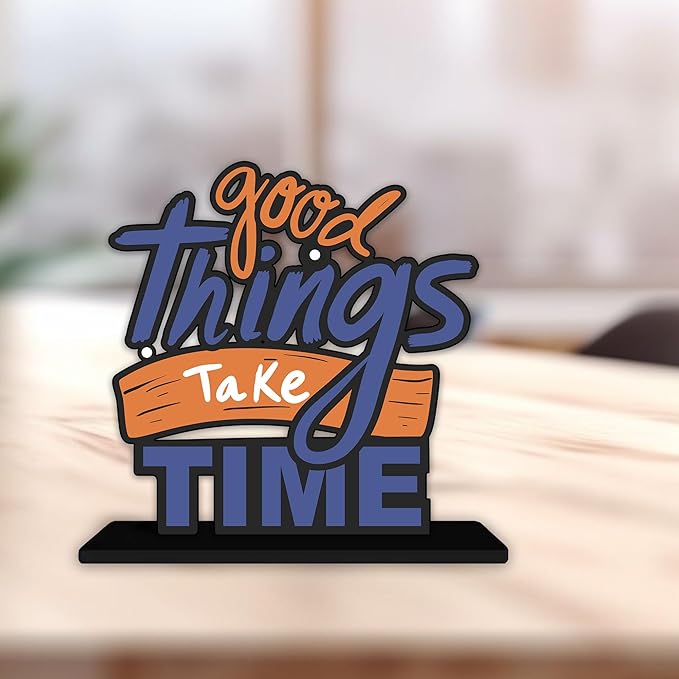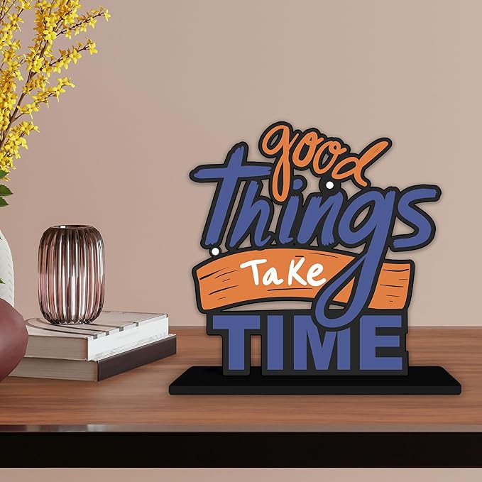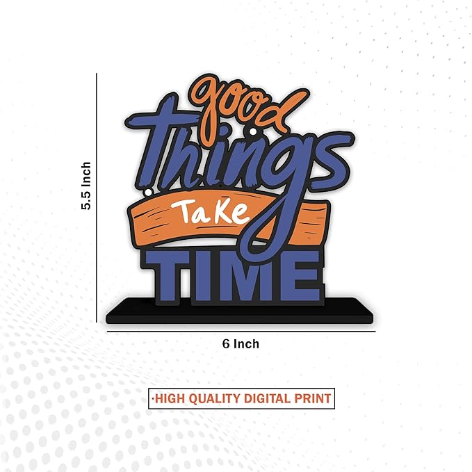 Artvibes Wooden Idols and Figurine Good Things Take Time Quotes Table Decoration for Office Desk | Home Decor | Living Room