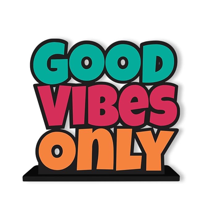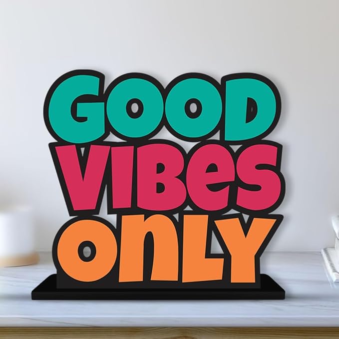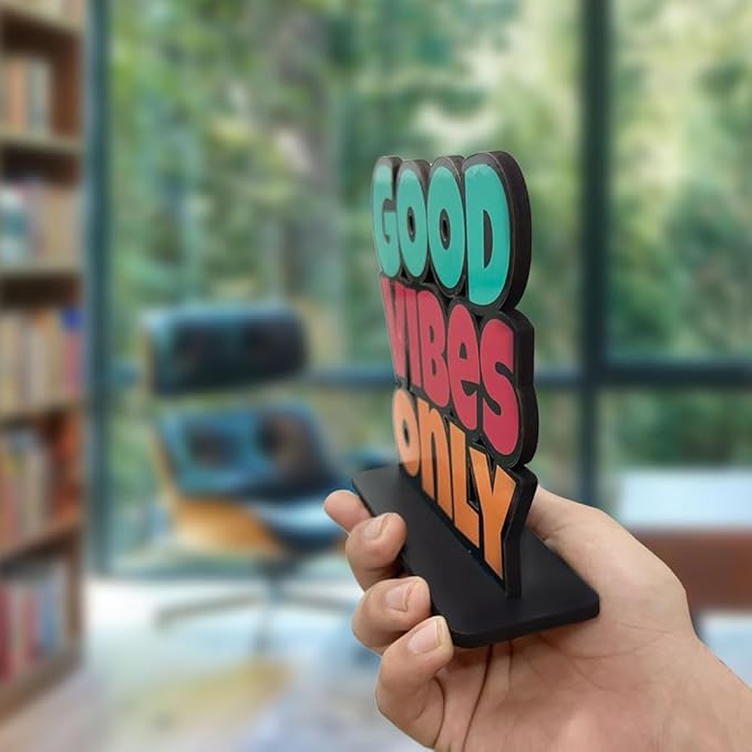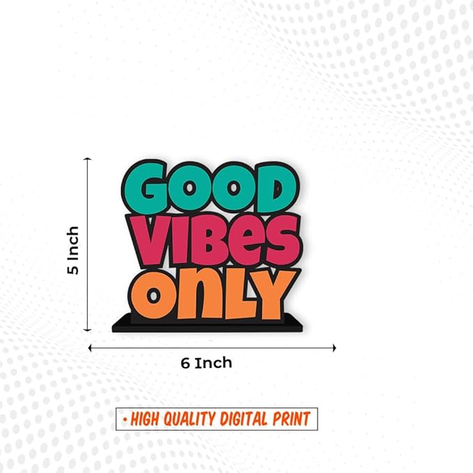 Artvibes Wooden Idols and Figurine Good Vibes Only Motivational Quotes Table Decoration for Office Desk | Home Decor Item