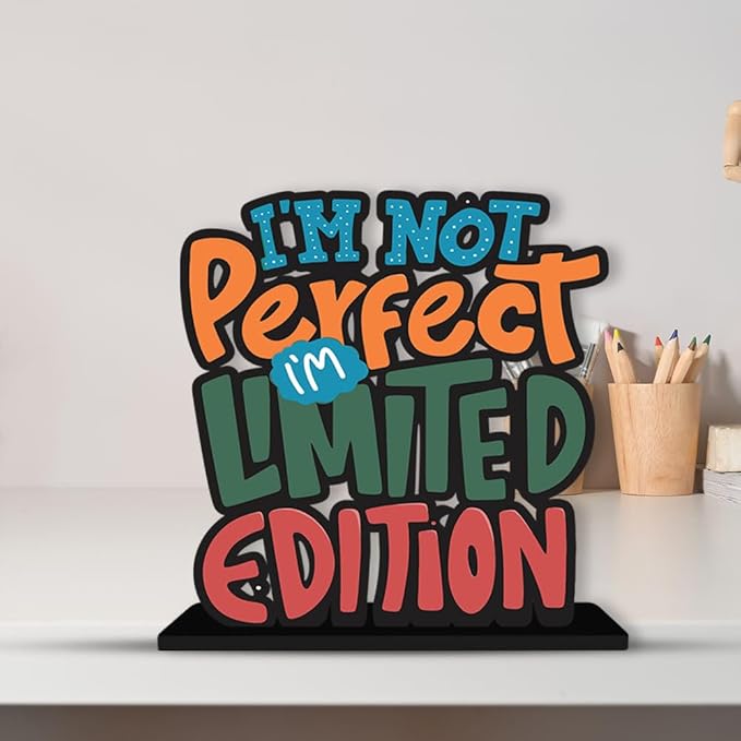 Artvibes Wooden Idols and Figurine I Am Not Perfect Limited Edition Inspirational Quotes Table Decoration for Office Desk