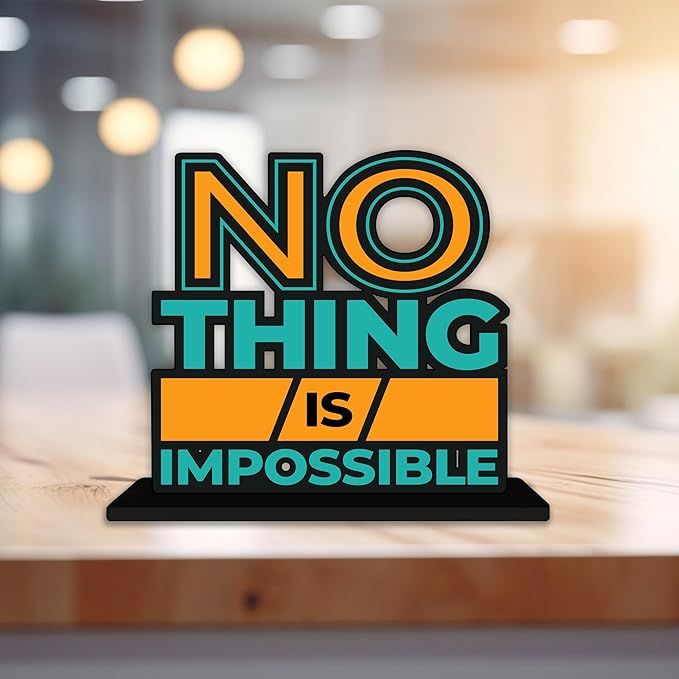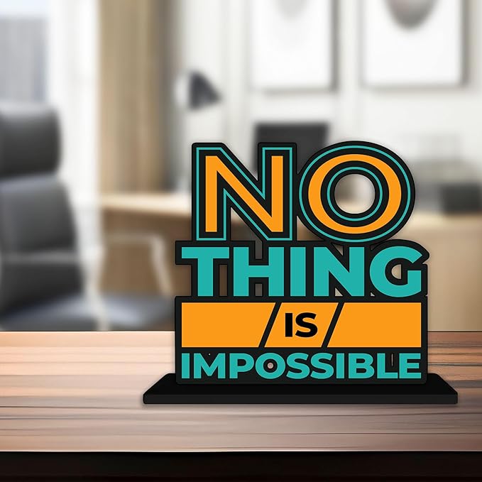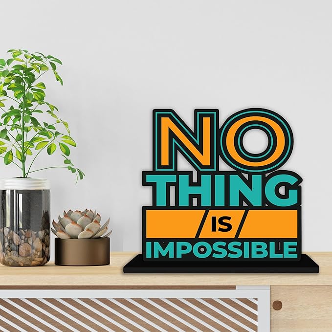 Artvibes Wooden Idols and Figurine Nothing is Impossible Quotes Table Decor for Office Desk Showpiece | Home Decoration