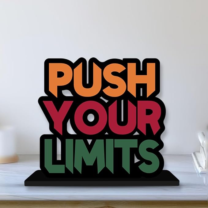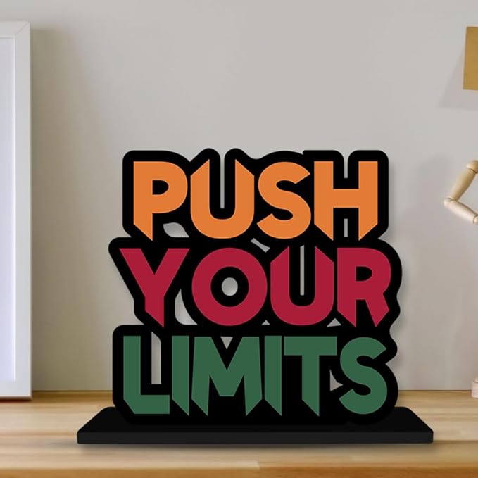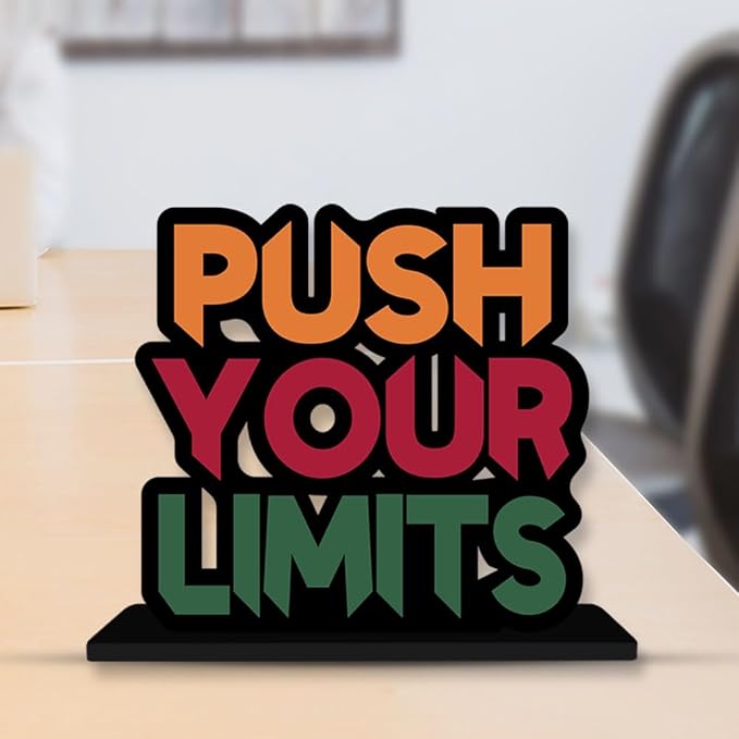 Artvibes Wooden Idols and Figurine Push Your Limit Quotes Table Decoration for Office Desk | Home Decor Item