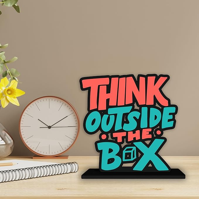 Artvibes Wooden Idols and Figurine Think Outside the Box Quotes Table Decoration for Office Desk | Home Decor Item