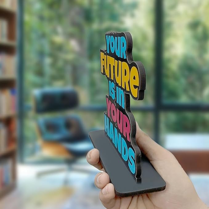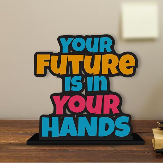 Artvibes Wooden Idols and Figurine Your Future is in Your Hands Positive Quotes Table Decoration for Office Desk | Home Decor