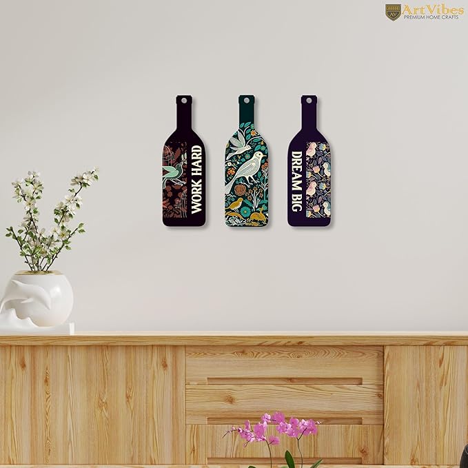 Artvibes Work Hard Dream Big Wooden Wall Hanging for Home Decor | Set of 3