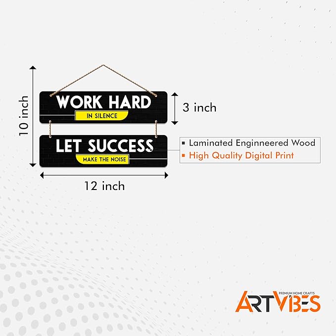 Artvibes Work Hard Motivational Quote Wall Hanger for Home Decor | Office | Set of 2