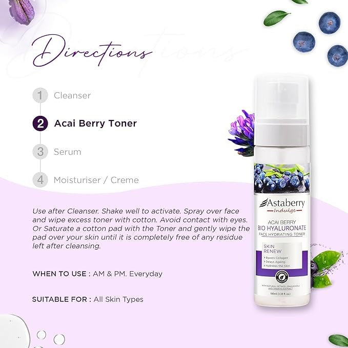 Astaberry Indulge Acai Berry Bio Hyaluronate Face Hydrating Toner - 100 ml
