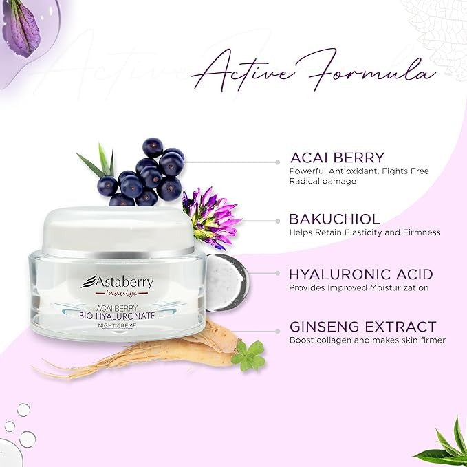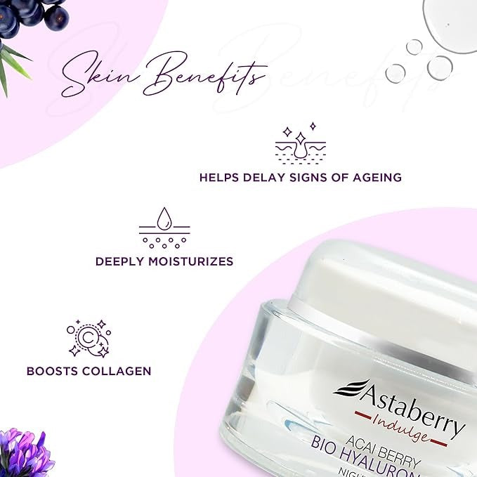 Astaberry Indulge Acai Berry Bio Hyaluronate Night Cream - 50 gms