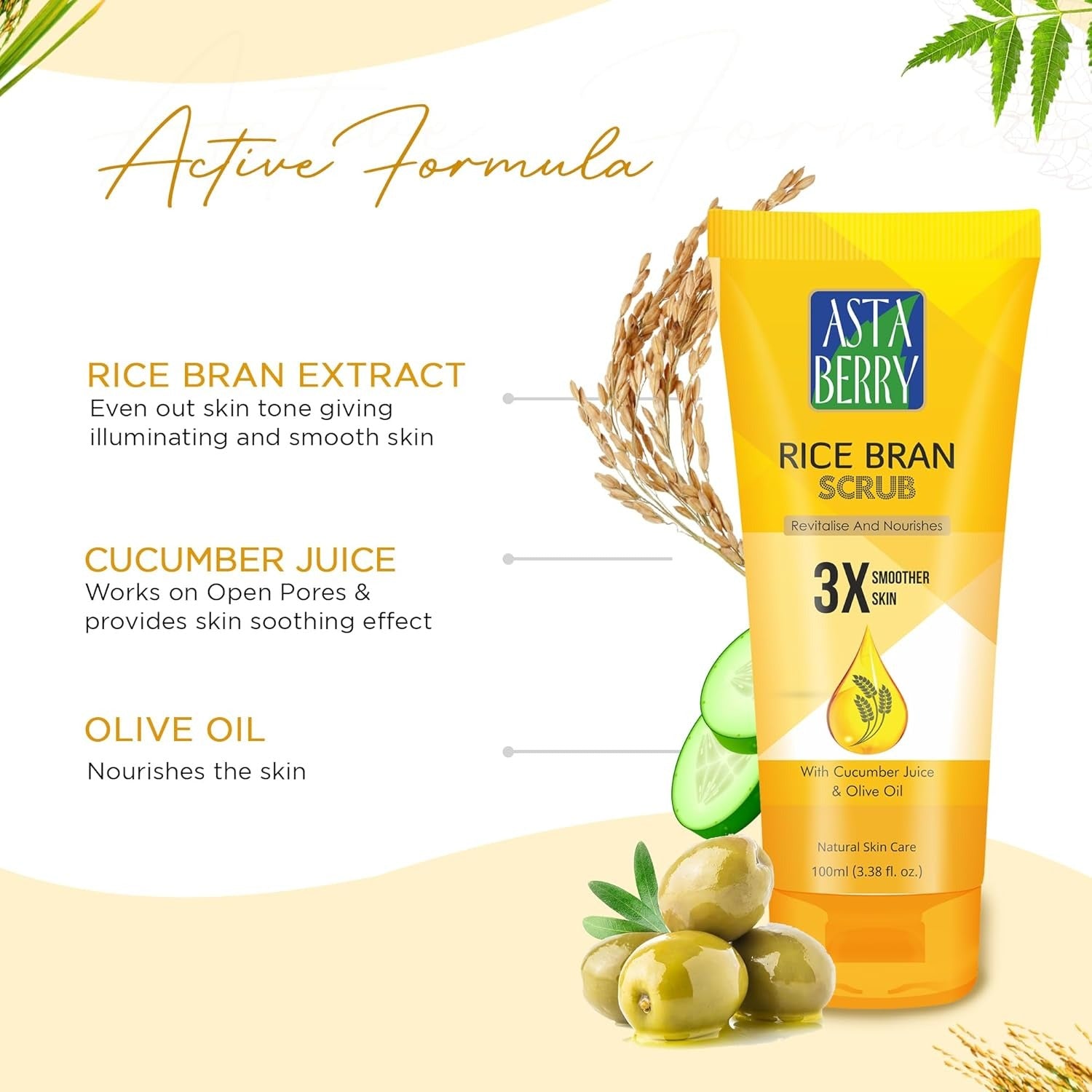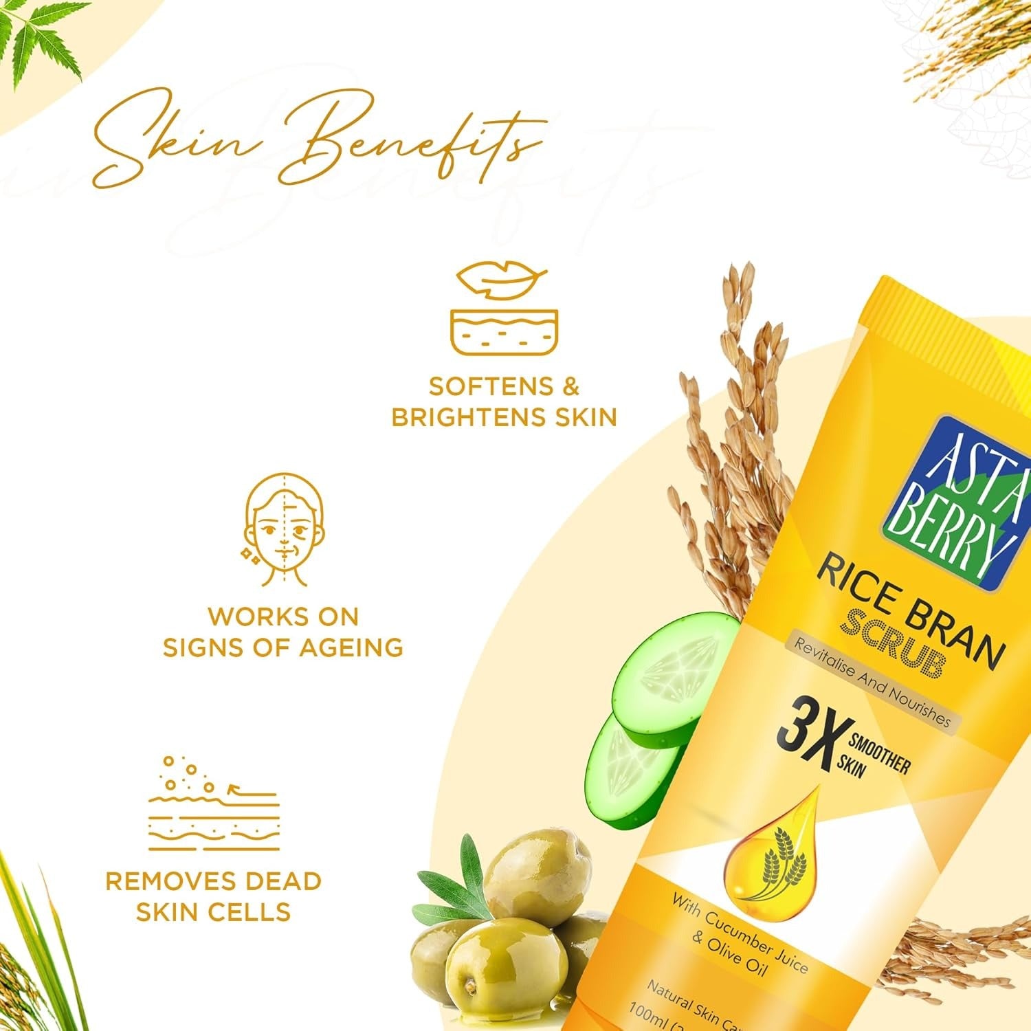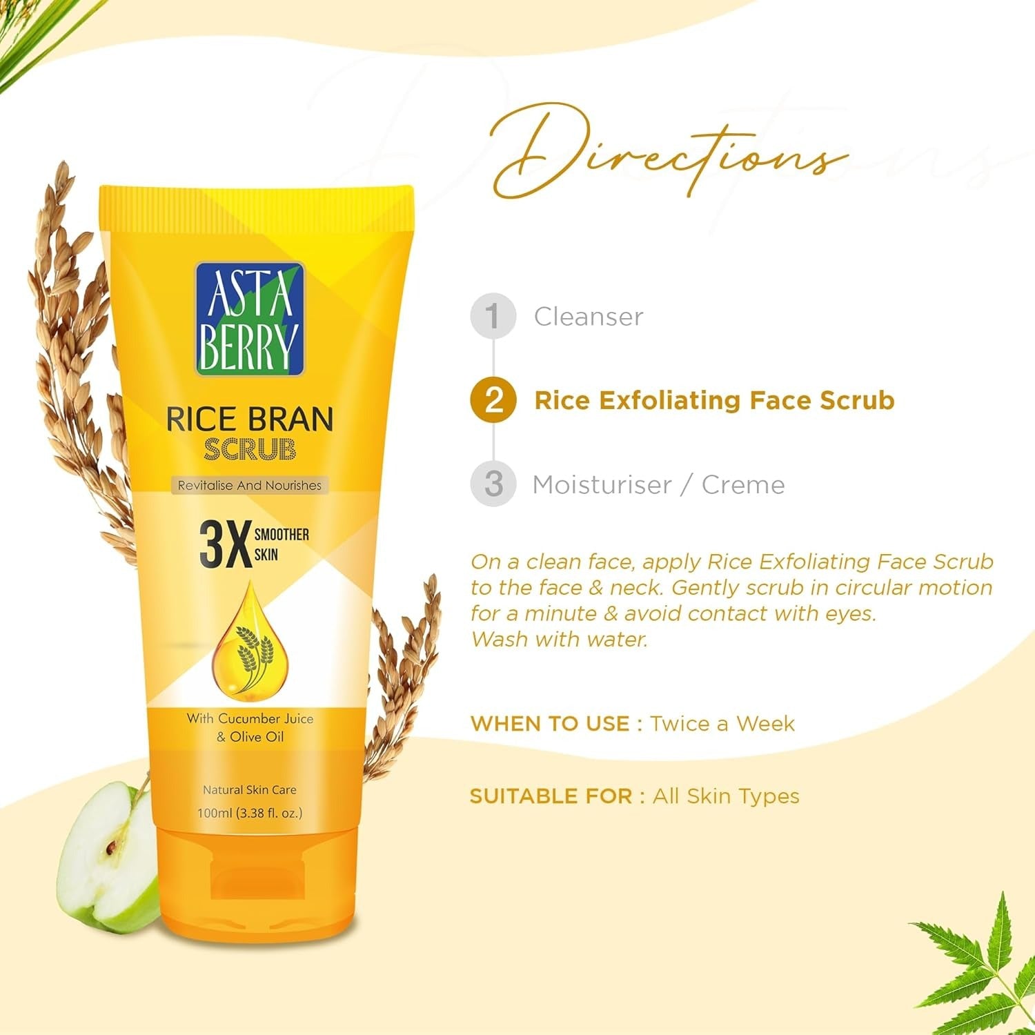 Astaberry Rice Bran Scrub - 100 ml (Pack of 2)