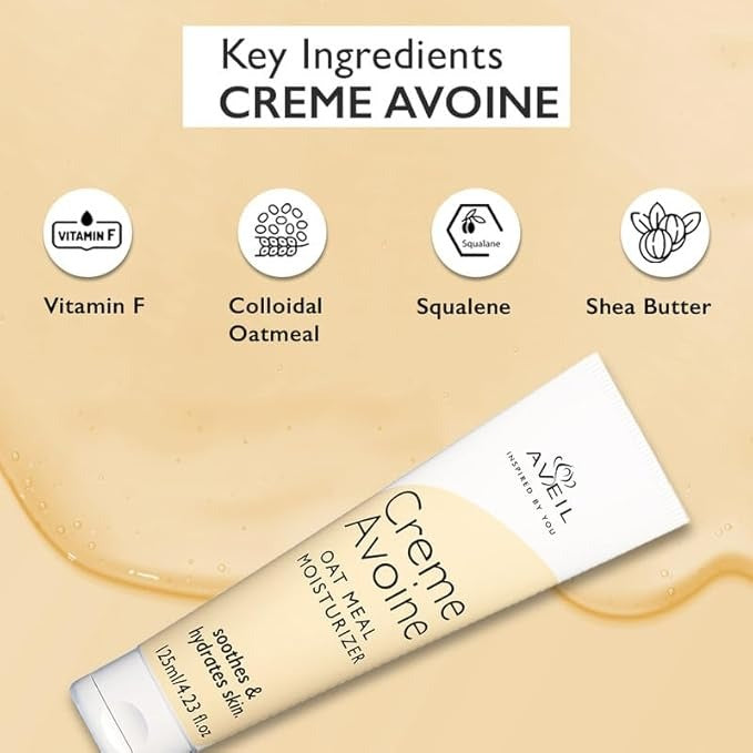 • Deep Moisturization for Lasting Hydration: AVEIL Crème Avoine is formulated with Colloidal Oatmeal, Sodium PCA, and rich emollients to provide intense hydration, making the skin soft, supple, and moisturized throughout the day.