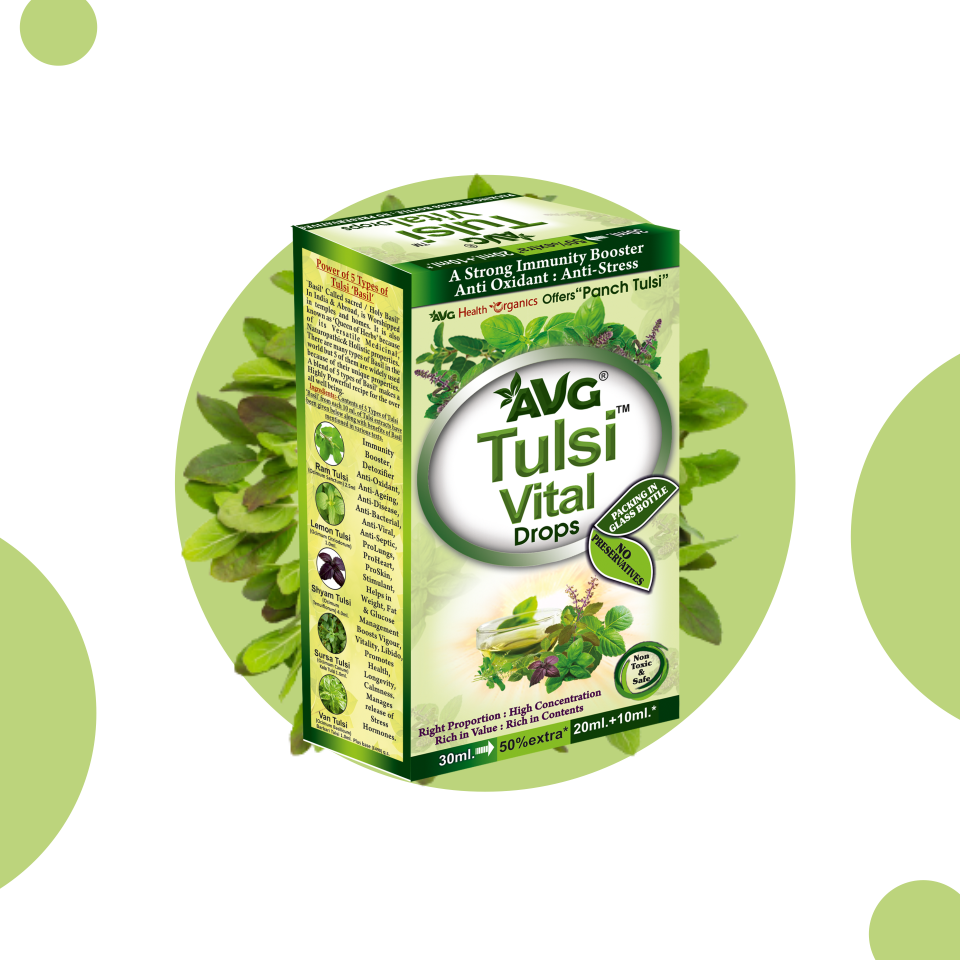 • AVG Tulsi Vital Drop is enriched with the goodness of Tulsi which is also known as "The Queen of Herbs".