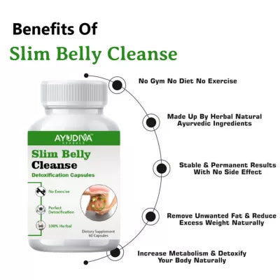 - Slim Belly Fat Cleanser Detoxification Capsules to reduce and flush stomach-burned fat naturally from your body without any gym, diet or exercise.