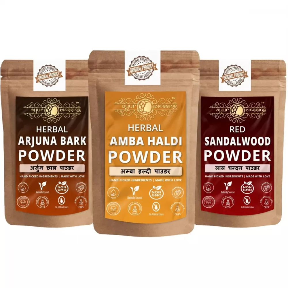 Ayur Blessing Herbal Amba Haldi & Arjuna Bark & Red Sandalwood Powder Combo
