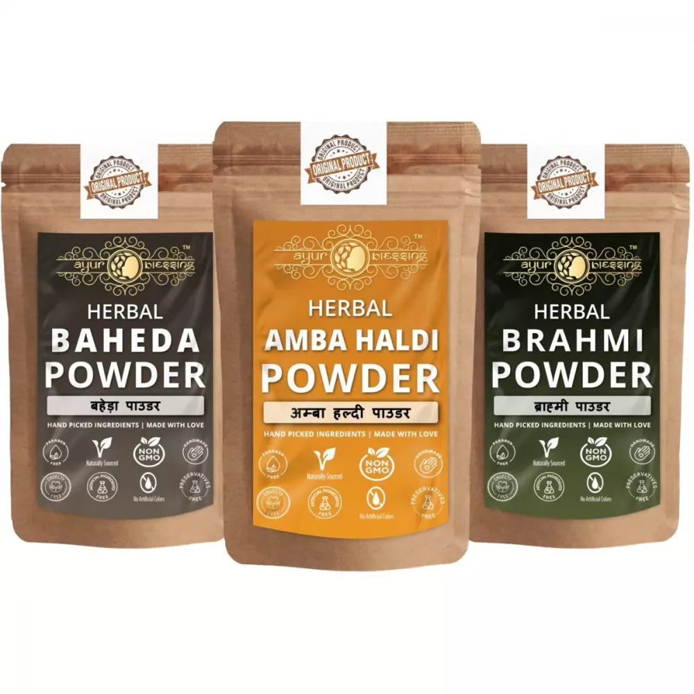 Ayur Blessing Herbal Amba Haldi & Baheda & Brahmi Powder Combo