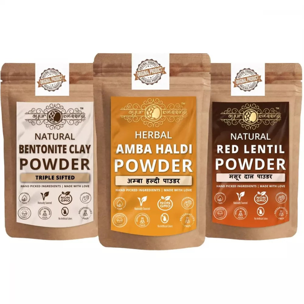 Ayur Blessing Herbal Amba Haldi & Bentonite Clay & Red Lentil Powder Combo