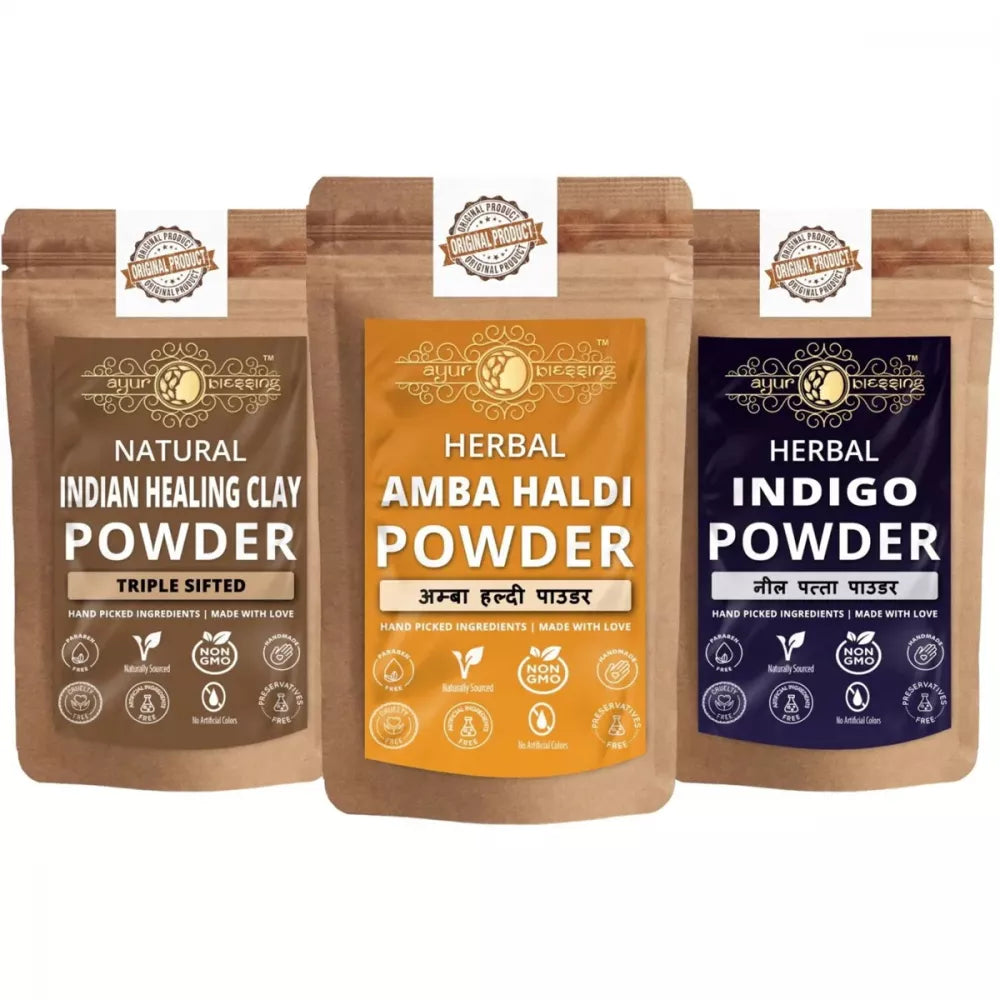 Ayur Blessing Herbal Amba Haldi & Indian Healing Clay & Indigo Powder Combo